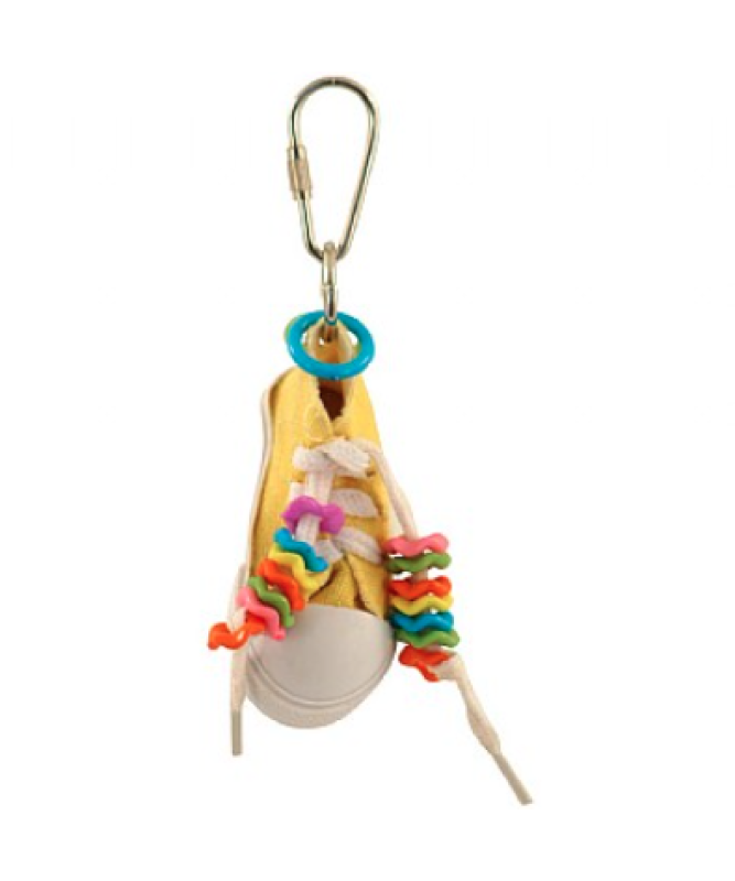 Popular Sneaker shaped chew toy fitted with cage connector.
