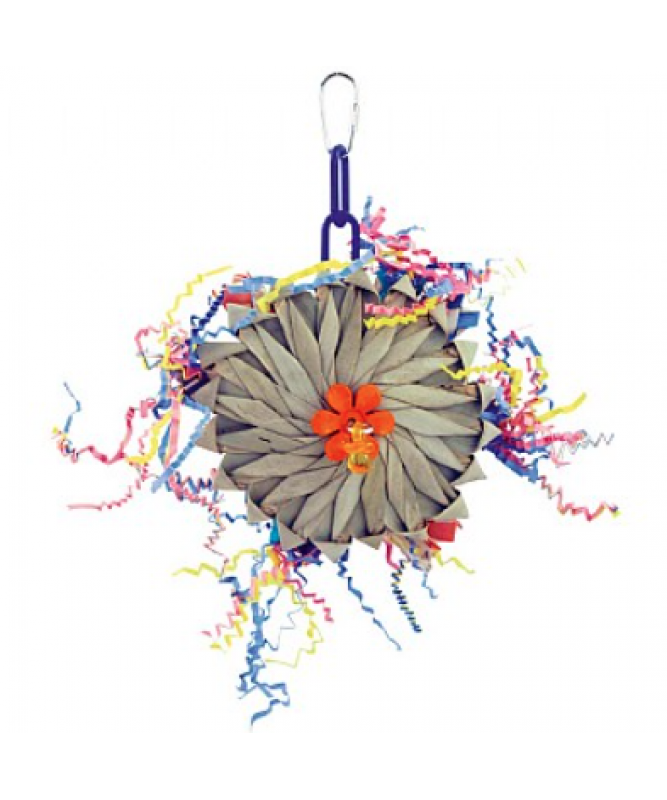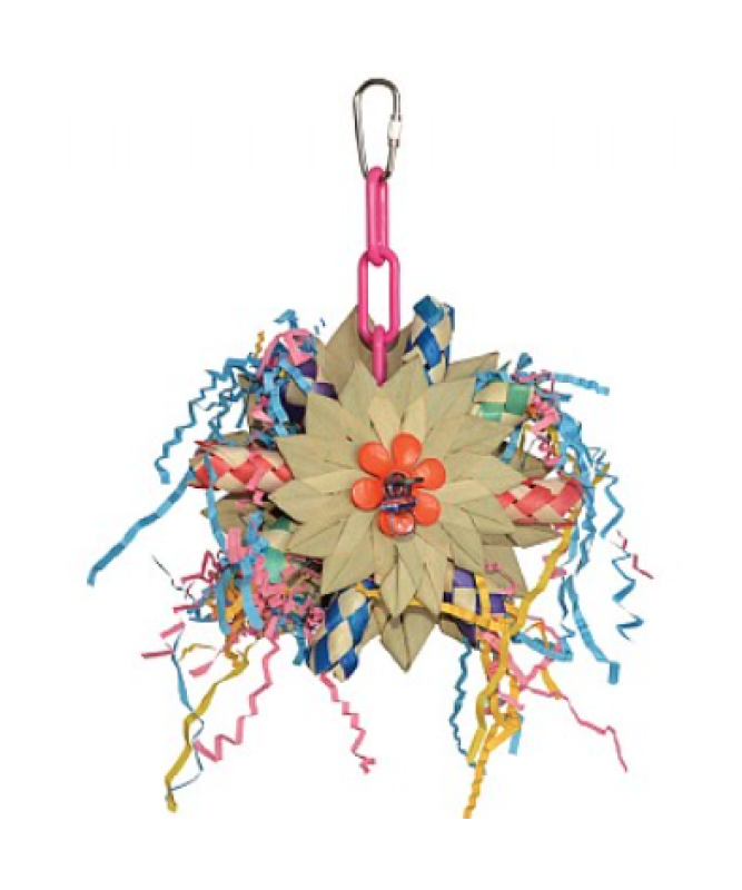 The handwoven palm leaf flowers and woven finger sticks make a delightful sound as your Parrot chews and works at unravelling them. Plus, it's overflowing with colourful crinkle paper your bird can enjoy pulling out and shredding up.