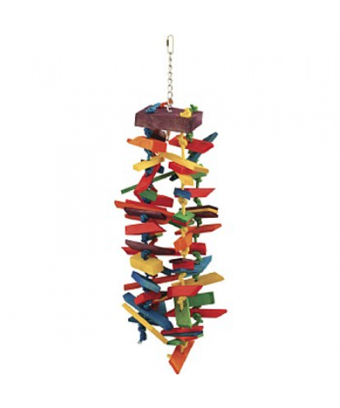 The Rainbow Tower Wood and Rope Parrot Toy has over 50 pieces of coloured, soft wood strung together with colourful sisal rope.