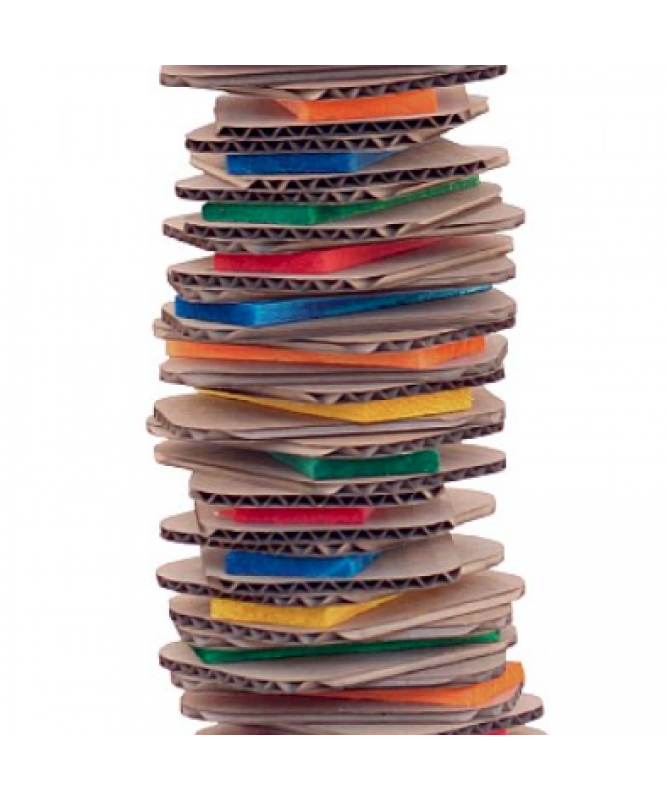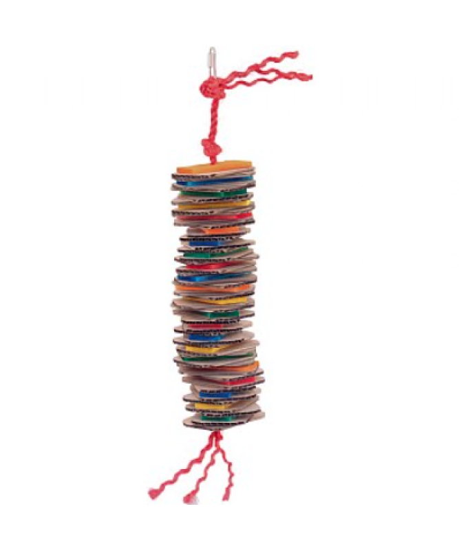 Threaded and stacked high, your Parrot can enjoy chewing away at all the coloured wood and corrugated cardboard slices to keep their beak healthy and trim.
