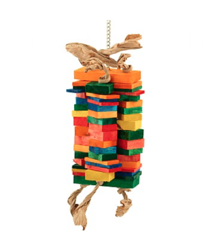 This Temple Towers Parrot Toy is part of the Zoo-Max range. With loads of colourful wood blocks and slices stacked together there is plenty to keep your Parrot's beak busy.