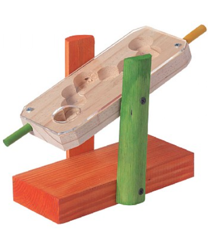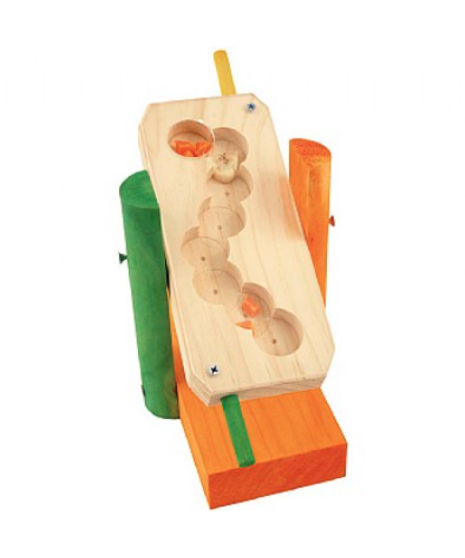 Place treats inside and tilt the seesaw back until they move down inside the track. Your clever Parrot has to work out how to move the see saw up and down to make their rewards travel back down towards the hole where they can retrieve them.