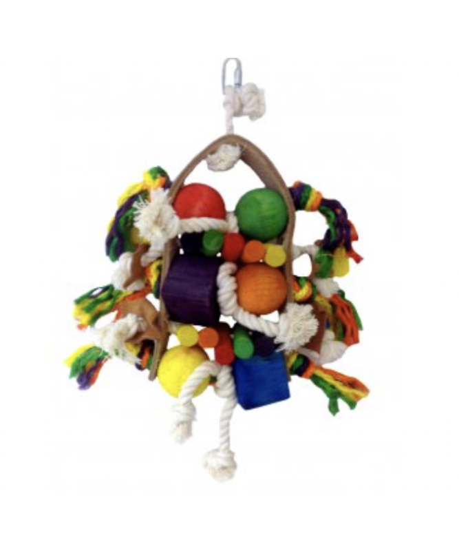 The Adventure Bound Toys Firework toy is suitable for Medium Parrots, e.g. African Greys and other similar sized birds.