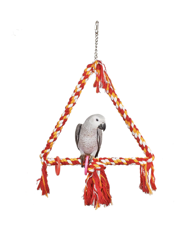 The Adventure Bound Toys Rope Triangle toy is suitable for Medium Parrots, e.g. African Greys, Large Parrots, e.g. Macaws and other similar sized birds.