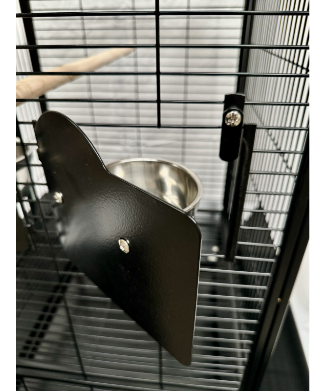 The cage itself is well sized and comes with two metal feeding bowls and a wooden perch