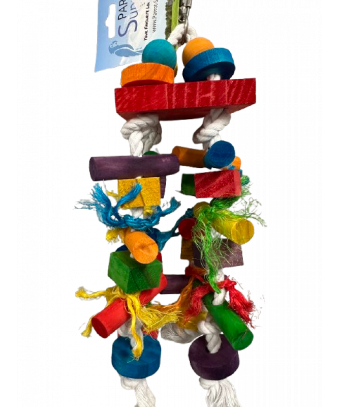 Can your bird tame the Sisal Invader Parrot Toy. four an assortment of coloured sisal rope for your bird to wrestle with. four ropes filled with wooden shapes and sisal ropes