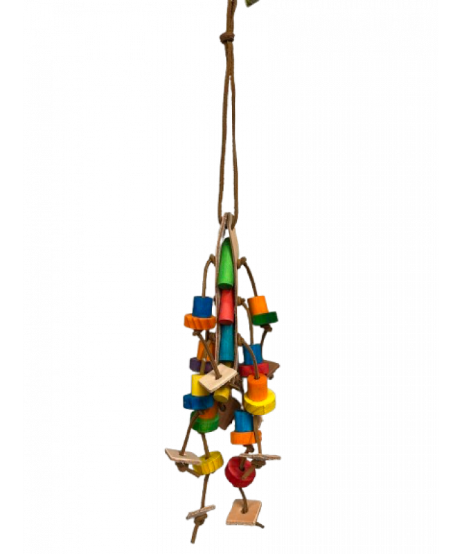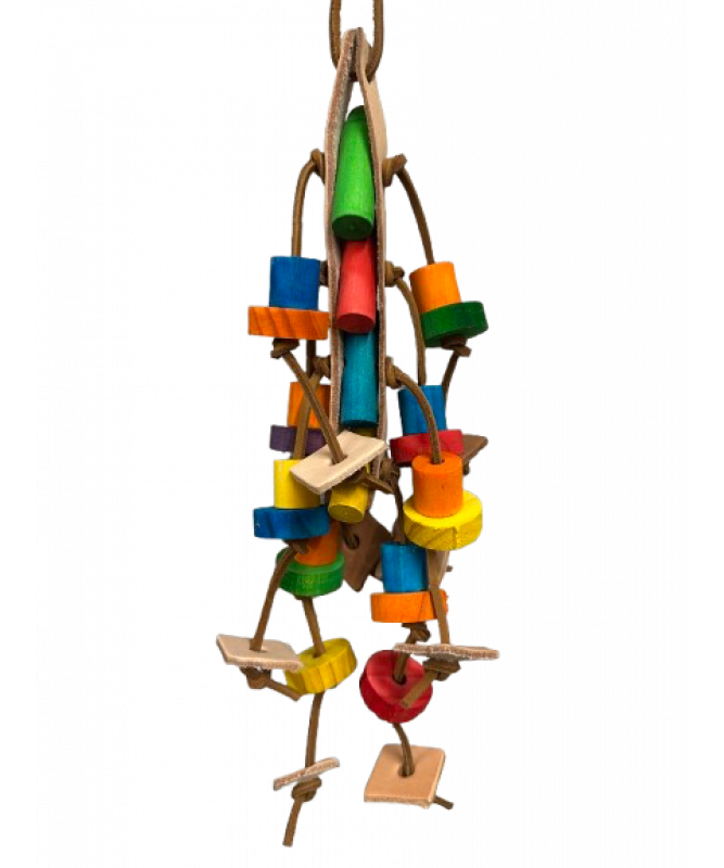 This Preening Plait - Leather Parrot Toy is packed full of chewable, preenable materials your bird can happily work away at. Untying the leather knots is loads of fun, especially if your Parrot enjoys pulling things apart. Perhaps you can tie even more knots in the leather laces or tie on wood blocks for your bird to chew?
