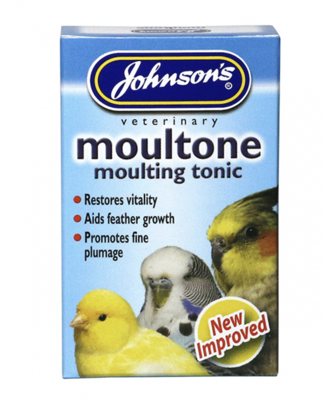 Moultone is a specially formulated multi-vitamin tonic for birds in the moult and helps to keep your indoor birds in tip top shape. It helps to restore vitality, aids feathering and promotes lovely plumage, keeping your birds looking fantastic. A specially-formulated complementary feed for all cage birds