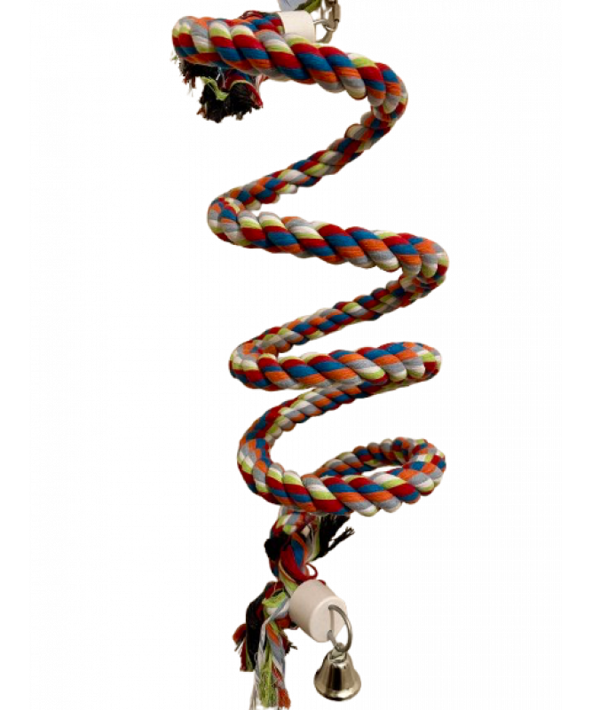 Nearly eight feet of safe, cotton rope in a bouncy, spring shaped design. Whilst being fun for your Parrot to play on, the Parrot Boing - Cotton Spiral Bouncing Perch - Large has an uneven shaped surface to ensure your bird`s feet are kept well exercised.