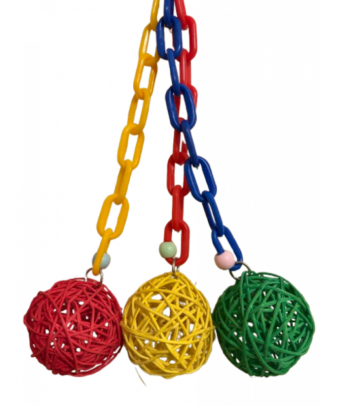 The three coloured woven vine munch balls create a fun toy for your bird to safely enjoy chewing on.