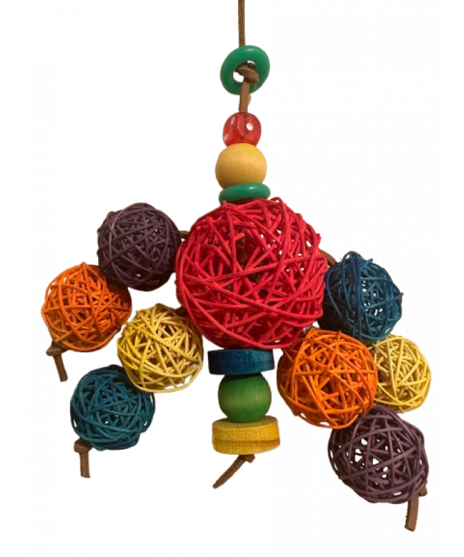 The coloured woven vine munch balls create a fun toy for your bird to safely enjoy chewing on.